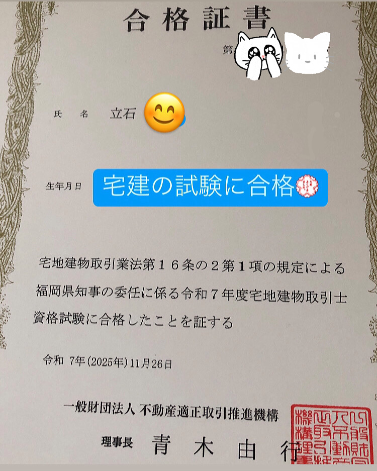 投資今日、宅建の合格通知が届きました! 次は11月に受けた賃貸不動産経営管理の試験の結果待ちですが、12月25日に合格発表です。